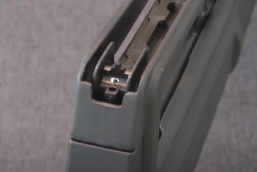 Кнопка извлечения магазина находилась справа - стрелок должен был убрать правую руку с рукояти для смены магазина.