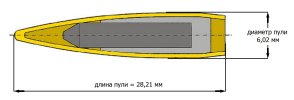 Схематическое изображение пули «Патрона стрелкового оружия повышенной пробиваемости» из патента RU 2809501 C1