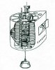 На рисунке - подводная стартовая площадка (ПСП), вариант названия - погружающаяся стартовая установка (ПСУ) проекта 602 для запуска межконтинентальных баллистических ракет УР-100М комплекса Д-8 (- морской вариант МБР УР-100 с дальностью 11 000 км). Этот аппарат предназначался для установки в прибрежных районах внутренних водоемов СССР - на Каспийском и Аральском морях, Ладожском и Онежском озёрах, на Иссык-Куле и Байкале. Разработка ПСП проекта 602 шла в 1962-1964 годах в ленинградском ЦКБ-18 (сейчас ОАО ЦКБ МТ "Рубин"), главный конструктор - С.Н. Ковалёв. ПСП - подводная платформа с 8 шахтами для запуска МБР. Предназначалась для использования во внутренних водных бассейнах и прибрежных районах, в том числе в ледовых условиях. ПСП была несамоходной - хотя она и должна была оснащаться дизель-электрической энергетической установкой с полным электродвижением, но только для компенсации течений. Боевое дежурство планировалось в подводном положении, запуск ракет - из надводного. Представляется, что ПСП проекта 602 с размещением во внутренних водоемах СССР представляла собой весьма экономичную альтернативу очень дорогому строительству атомных РПКСН. Разработка проекта была прервана в конце 1964 года, после смещения Хрущева.