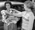Собак Белку и Стрелку, совершивших суточный полёт, демонстрируют иностранным журналистам, 1960 год