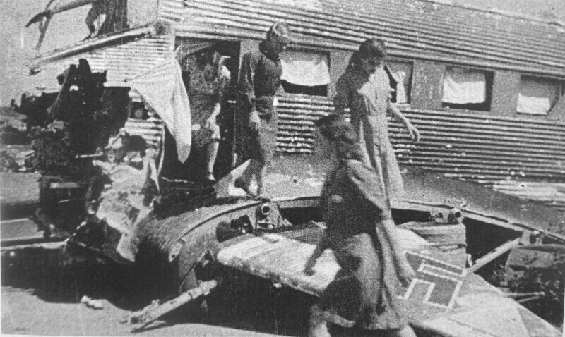 Импровизированное общежитие в корпусе сбитого Ju-52. В таких приходилось жить людям на начальных этапах восстановления Сталинграда.