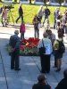 2. У входа на кладбище собираются люди, никто не спешит к мемориалу. Слушают оркестр, ждут родственников, знакомых, дарят цветы стареньким ветеранам.