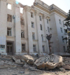 Это скорее всего удар Бетабом по бункеру под зданием администрации. Они тогда строились в обязательном порядке. По взрыву видно что почти нет огня и много пыли. Достаточно сравнить с прилетами предыдущих пятисоток в это здание. Я полагаю сначала развалили КАБами и уже потом дослали Бетаб.